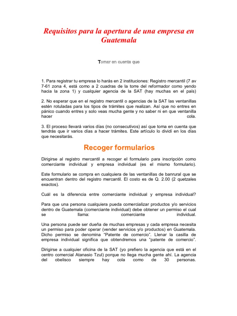 Requisitos Para La Apertura De Una Empresa En Guatemala via es.scribd.com